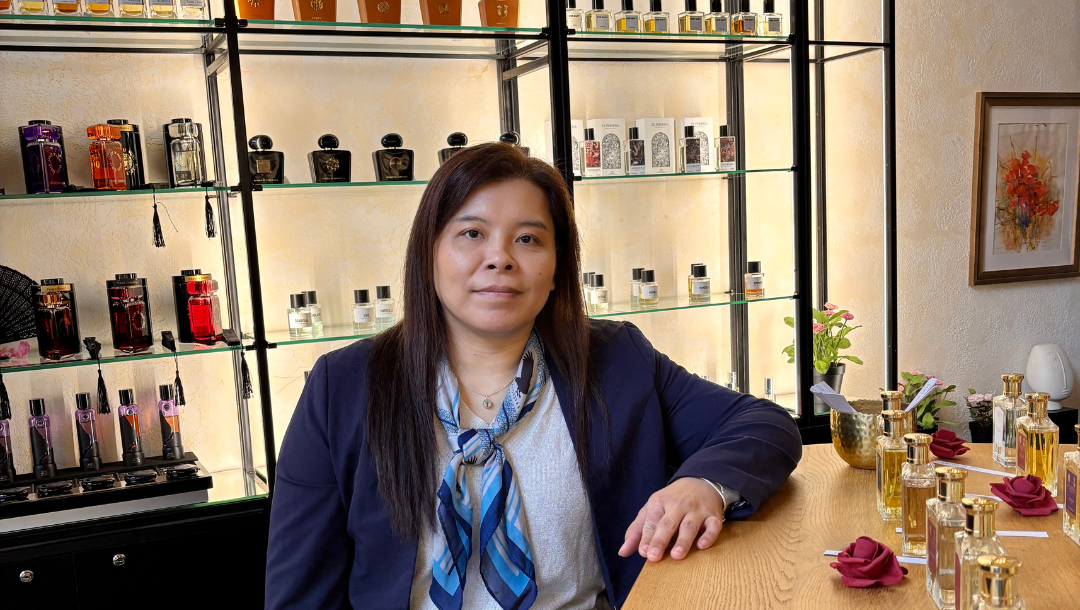 Dinh Gyöngyi és férje közel 10 éve, 2018-ban nyitották meg az első üzletüket Budapesten nem sokkal azután, hogy Milánóban jártak egy nemzetközi parfümkiállításon. Ott találkoztak ugyanis először az ún. niche parfümökkel*, amelyeknek az az egyik sajátossága, hogy nem tömegeknek készülnek, hanem – sokszor egyedi megrendelésre –, kis szériában, nem ritkán extrém alapanyagokból, de mindig művészi szemlélettel. „Milánó után fogalmazódott meg bennünk az ötlet, hogy jó lenne ezeket a különlegességeket a magyar közönségnek is megmutatni” – meséli Gyöngyi, aki hazaérve a férjével együtt rögtön elkezdte tervezni a vállalkozást. Számoltak, egyeztettek, lokációt kerestek. Végül a Nagymező utcában találták meg azt az ötven négyzetméteres helyiséget, ahol megnyílt az első üzletük. Az volt a céljuk, hogy ne egy luxus parfümériát, hanem egy hangulatos, barátságos környezetet alakítsanak ki, ahova szívesen mennek be az emberek.